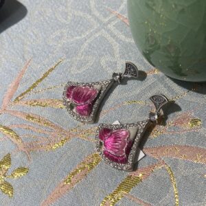 Handmade Miao embroidery silver earrings – pink floral pattern