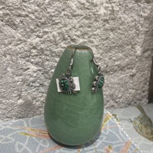 Handmade Miao embroidery silver earrings – green embroidered crab