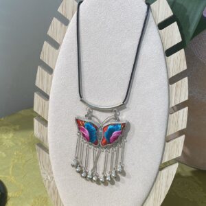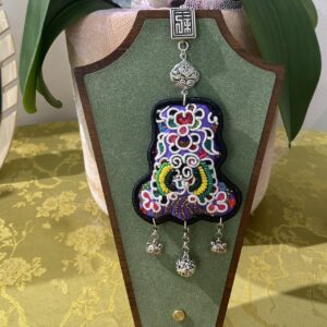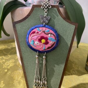 Handmade Miao embroidery silver necklace – butterfly embroidery with tassels