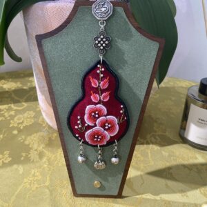 Handmade Miao embroidery silver brooch – red background plum blossom pattern with tassels