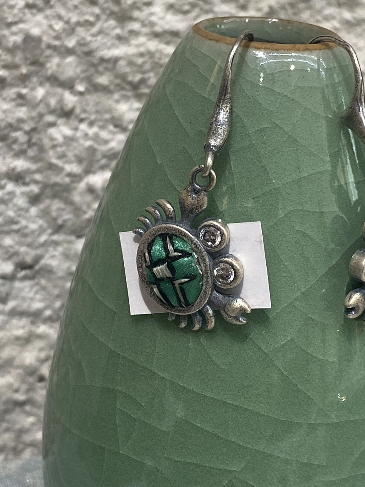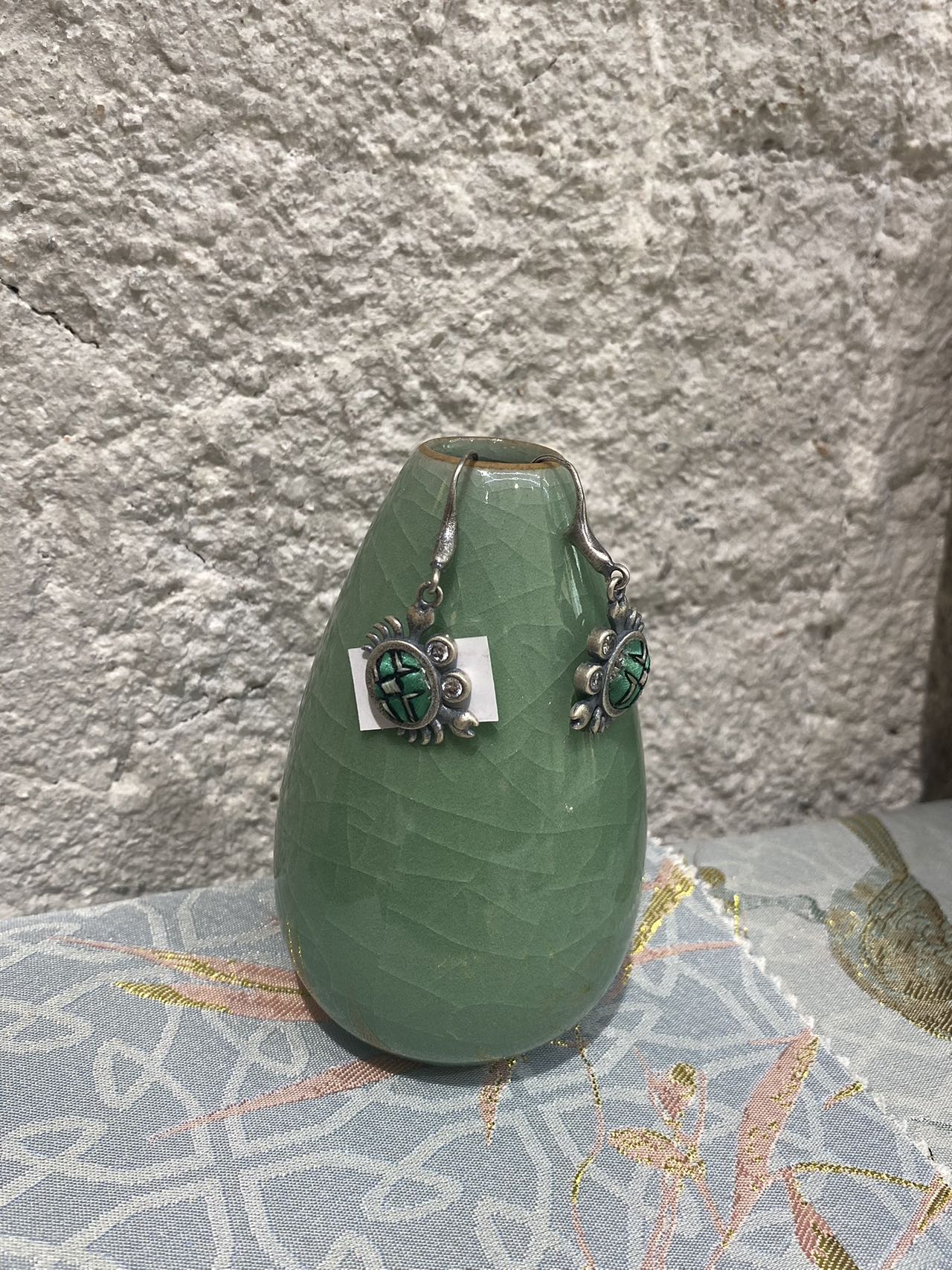 Be the first to review “Handmade Miao embroidery silver earrings – green embroidered crab”
